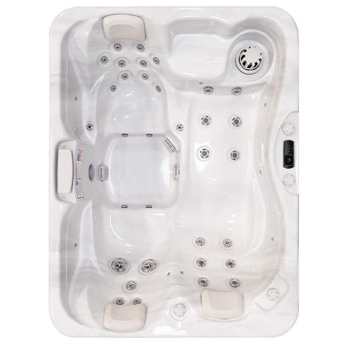 3-Person Hot Tub with 33 JetsDon’t give up performance for space constraints. This spa will capture your heart. The Kona is fully loaded with 2 high performance jet pumps and 33 exclusive candy cane jets that are placed in just the right spots to melt away stress. It fits 3 people with a full size lounger, A Cool Down Seat and two captain seats. Enjoy a blissful ambience of the Waterfall as you relax and unwind. |